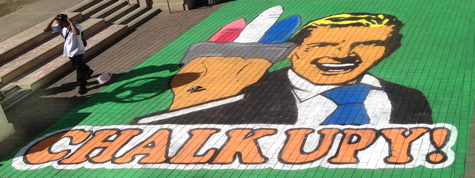 I have brought its my particular brand of artistic chalk rebellion to Oakland's Plaza, Los Angeles' Pershing Square, San Francisco's sidewalks, Monsanto's Davis Campus and Baltimore's Inner Harbor to date.