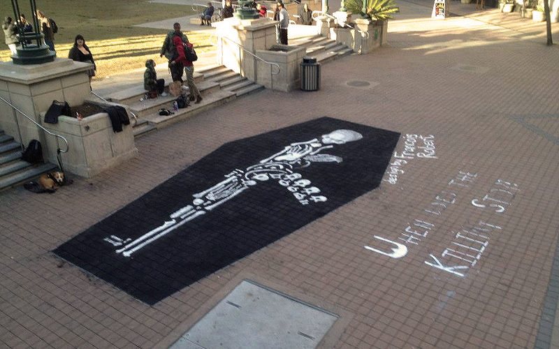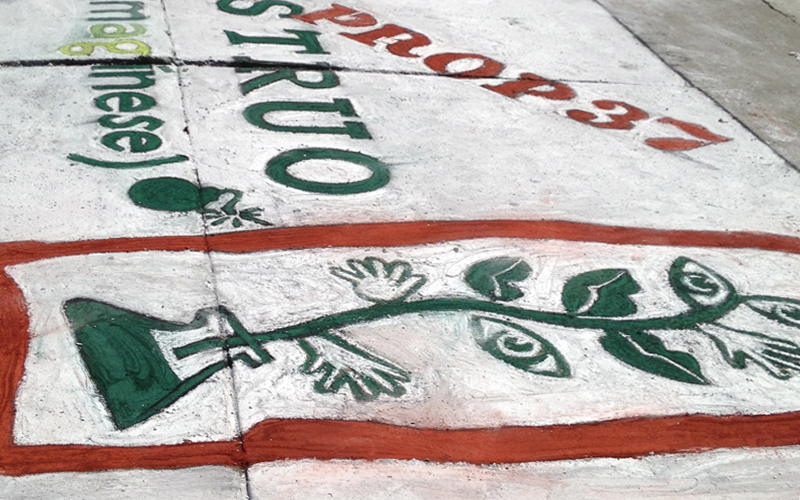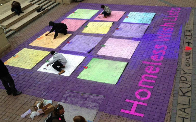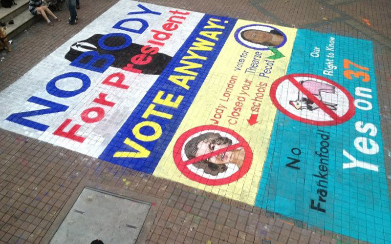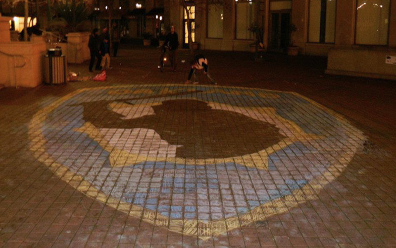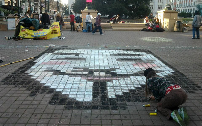 I have brought its my particular brand of artistic chalk rebellion to Oakland's Plaza, Los Angeles' Pershing Square, San Francisco's sidewalks, Monsanto's Davis Campus and Baltimore's Inner Harbor to date.
