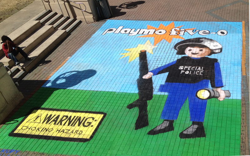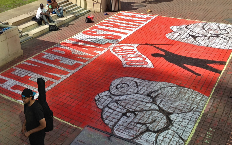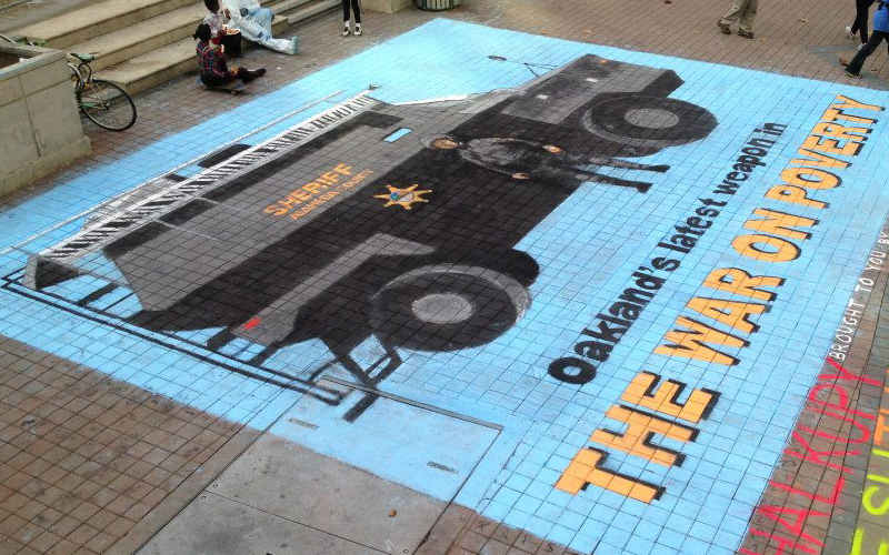 Corporate co-option of public space and media make it almost impossible for someone without billions of dollars to have a voice. With expression being more and more restricted, artists need to find space where they can be heard. The sidewalk is one of the only places that hasn’t been taken over by the corporate hegemony.