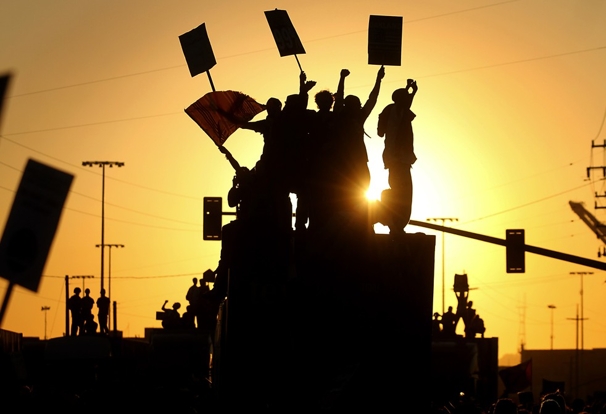 Chalk from a photo of protestors up on rigs at the port. No words. This was an attempt to chalk one of the famous, sunset photos of OO’s November port closing. It was a nostalgic image and a first attempt at blending. The chalk does not have enough gradations of color to really achieve a good gradient. It’s a challenge we still struggle with. This was the first time that someone took a photograph from a high floor of one of the buildings that surround the plaza.
