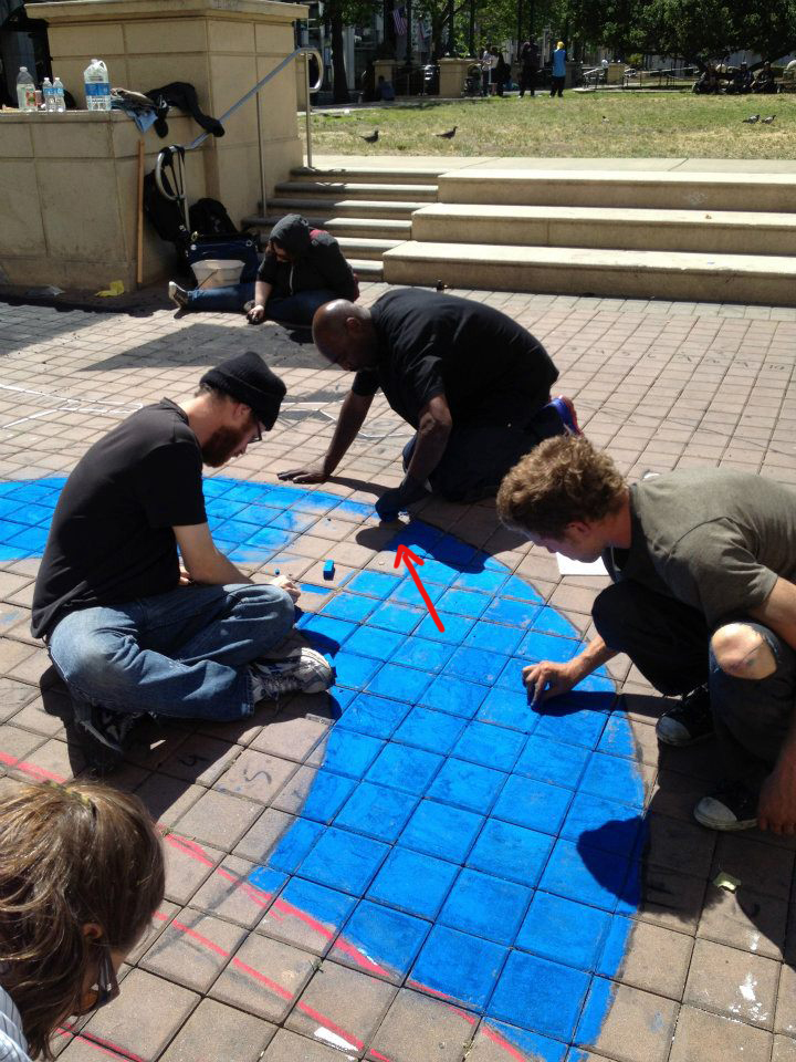 One of the city workers whose job it was to wash the square every Monday left it up an extra day until Tuesday because he liked it and wanted to show his wife. I was worried that dissing Obama would make me unpopular in downtown Oakland. Not so. People’s clear disappointment in their elected leader came through in their enthusiasm for the image.