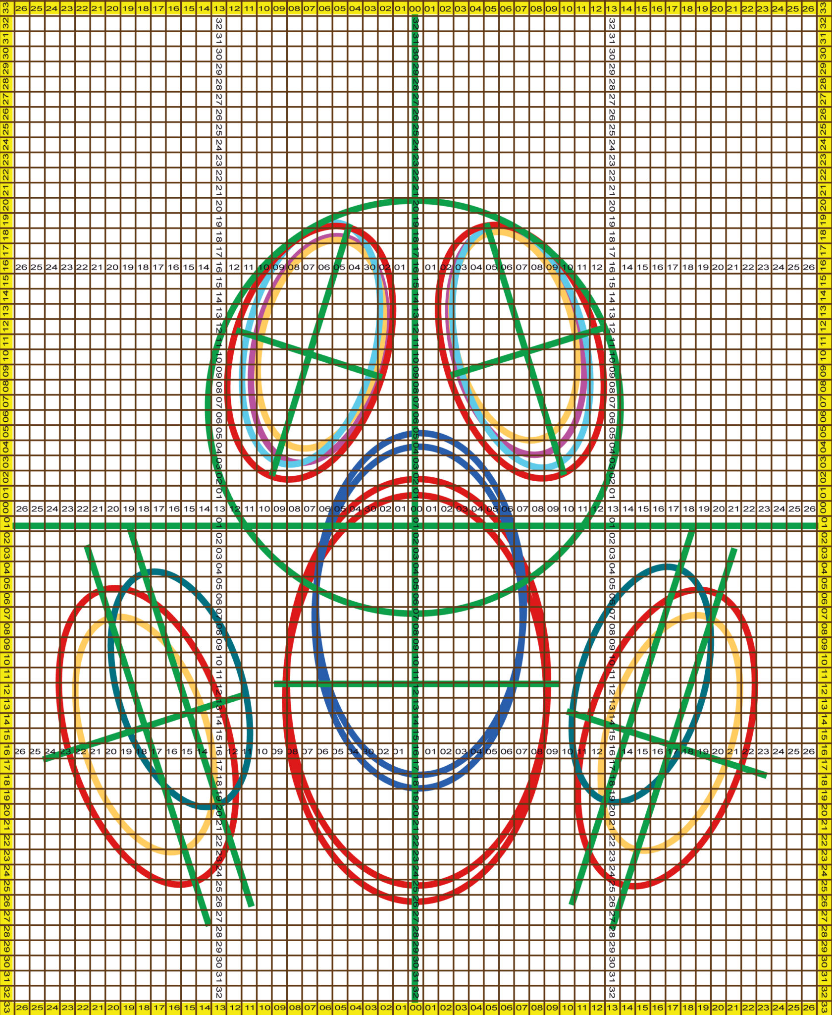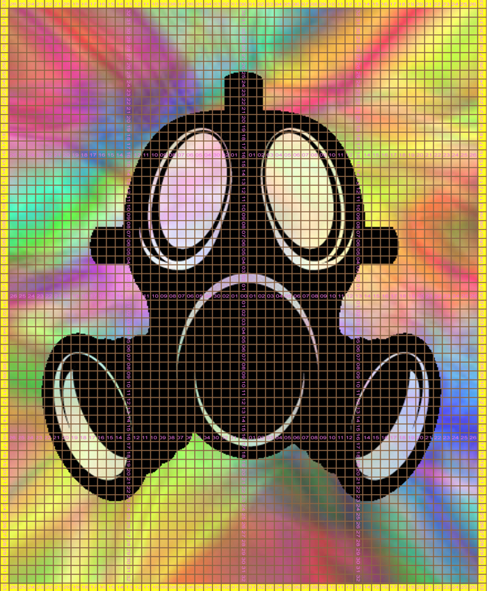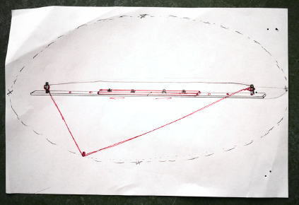 The mask presented a real challenge to make all the ovals look good. Remembering an old billboard painter’s trick I searched the web, relearned the trick and Chris made a tool for the purpose which consisted of two cylinders at a fixed distance and a long loop of string. Since we didn’t have that much of any one, single color of chalk, I decided to make the background lurid and gassy, allowing people to choose their own color and interpretation.