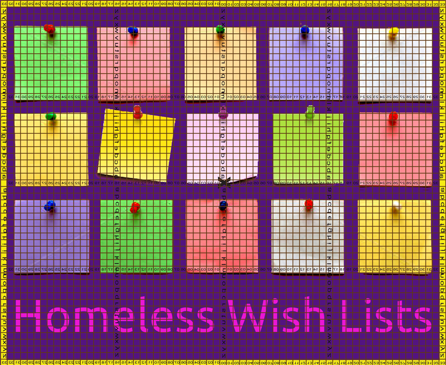 The image was a series of colored post-it notes and the tag line was Homeless Wish Lists. Seeking to keep things interactive and wanting to do something about the homelessness that affected many of my chalkers, I had the idea to let them speak for themselves. I did a design of post-its and allowed people to choose the colors themselves.