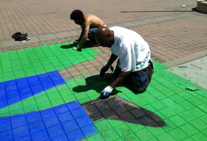 The most common misconception about Chalkupy is that it is more organized than it is. The plazas are public spaces. There is no way to control the people who show up but we try to set it up to go well. Invite anyone and everyone to have juice, sing, dance, party and chalk if they please. You’ll find that most people who participate take personal ownership of whatever part of the event that they want to. They self-evaluate, decide what they want to do, whether it’s drawing something complicated, filling in, keeping our stuff from being stolen, keeping the area clean, DJ-ing, handing out flyers and pizza or just getting in the way.
