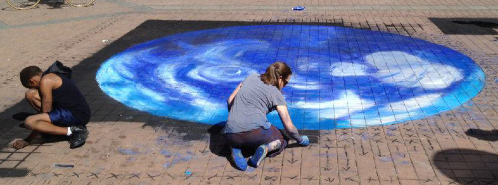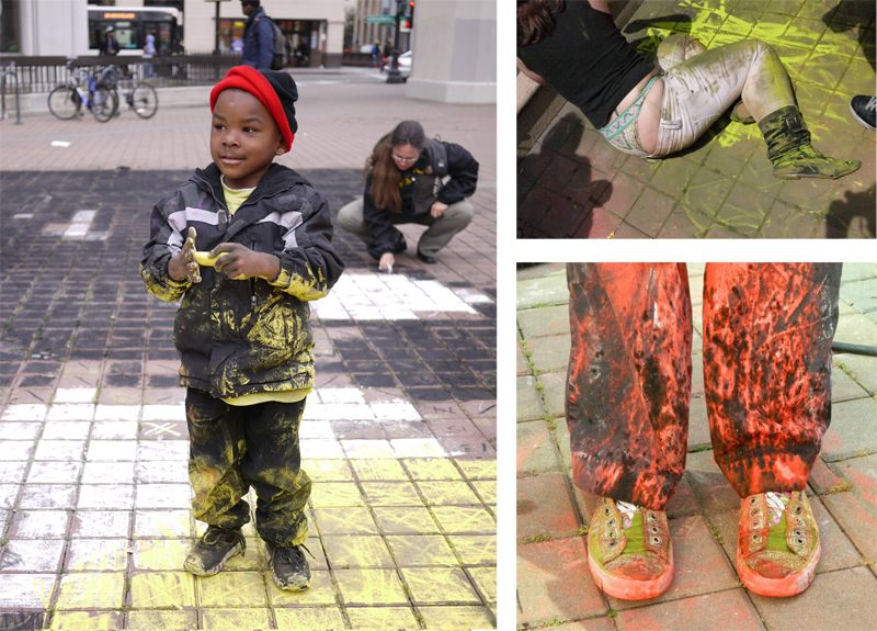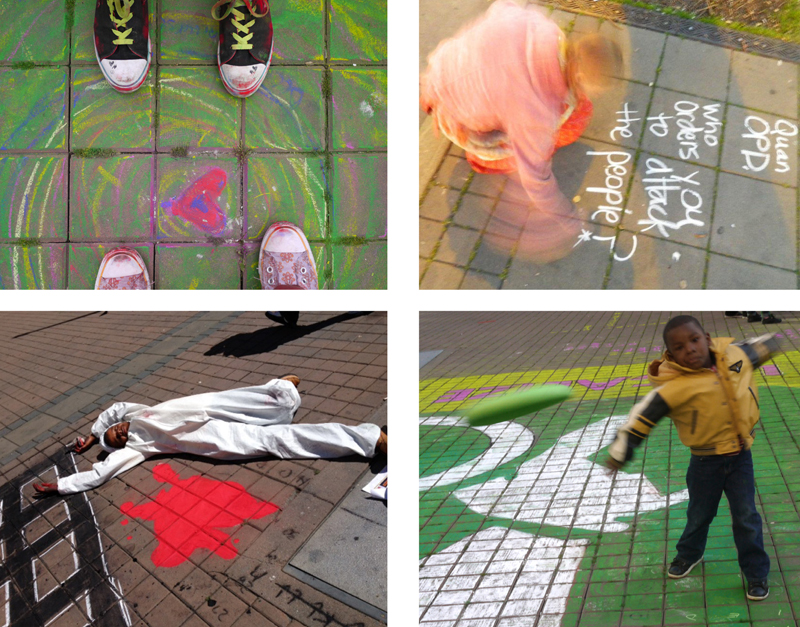 An important element of parties is freedom, so we give people who don’t want to chalk our designs their own, attractive chalk that they can use to do there own thing nearby. Most people are cool with chalking somewhere else if we give them the choice, aside from the occasional small child who has to be reminded. We have to deal that fairly often but that’s pretty normal for a party really. One little girl ate the chalk but luckily it was non-toxic.