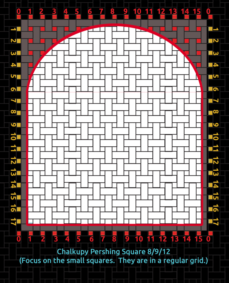 This is the map of the pavers at the SW corner of Pershing Square in downtown LA. These pavers are a lot bigger than the Oakland ones.
