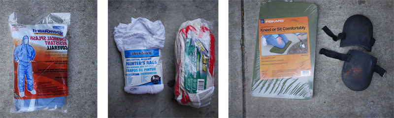 You may want to bring gloves, coveralls, knee pads, pizza and lots of water for washing up. We mostly blend and erase with our rubber-palmed gloves. They work pretty well for that.