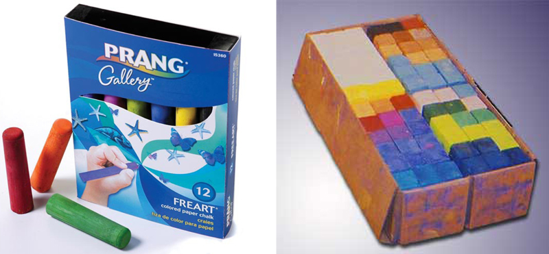 Our favorite brands of chalk are Prang and Eternity Chalk. None of the others are as bright and deep. Prang’s warm colors are better but Eternity’s blues are the best. A nice thing about Eternity is that you can order whatever mix of colors you want, you are not limited to just ordering fixed sets. You can order an entire case of just one color.