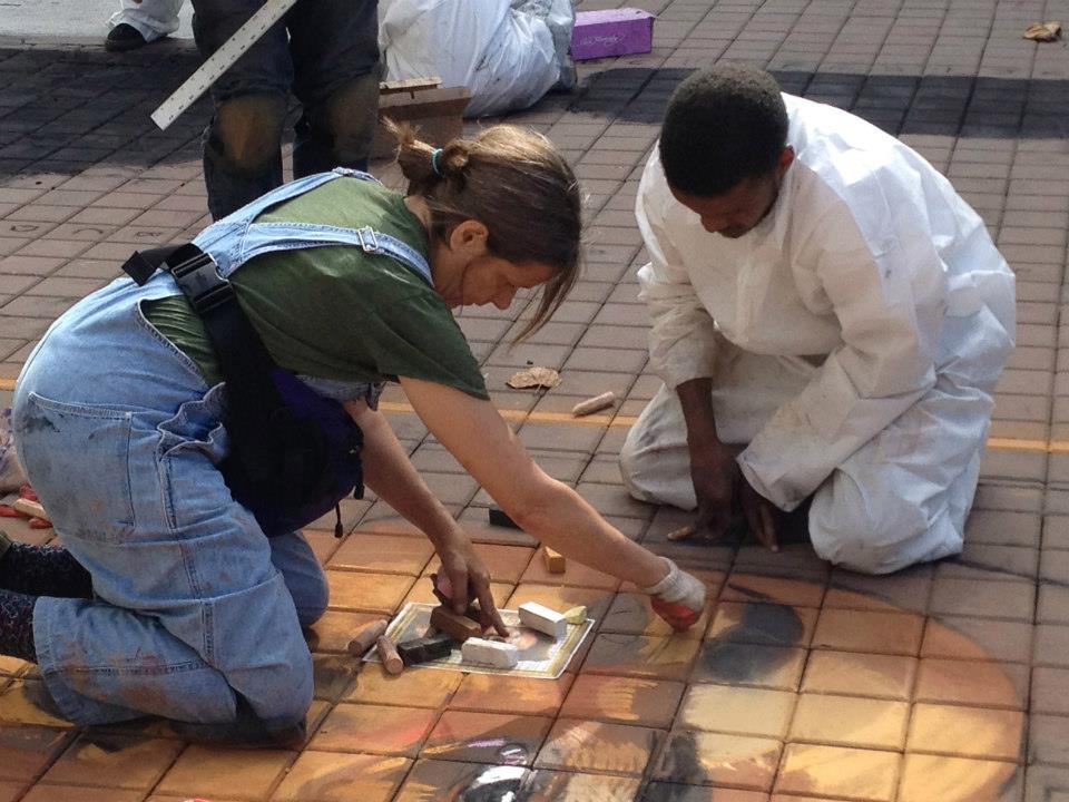 Toriano did not want to give back the dustbuster we used to suck up excess chalk dust.