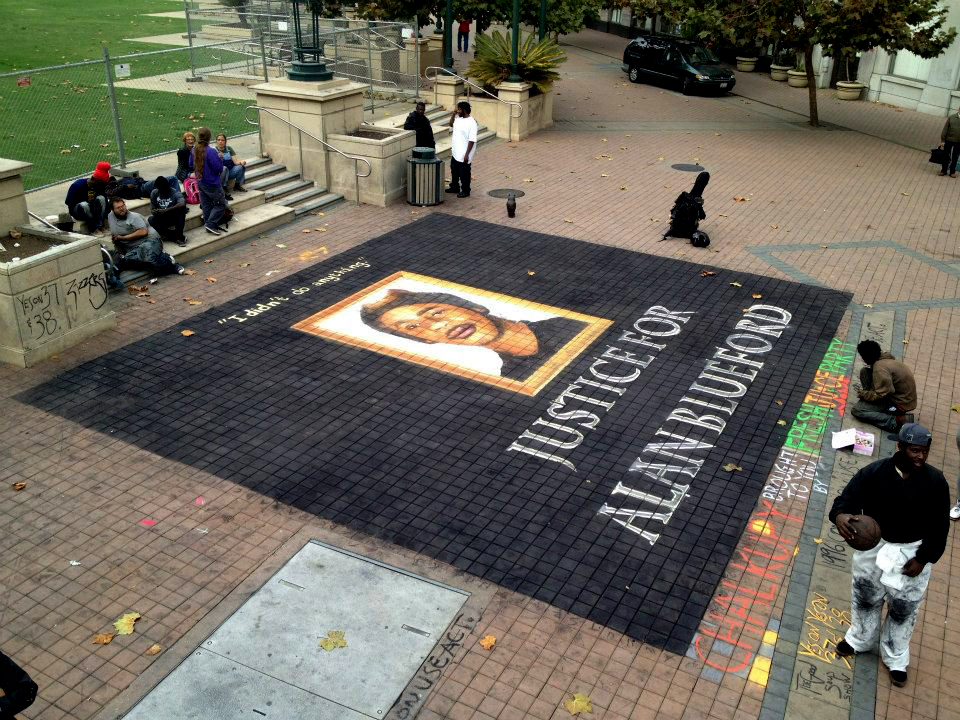 According to ABC News: Alan Blueford, 18, was shot by Oakland police Officer Miguel Masso shortly after midnight on May 6, 2012, during a foot chase near 92nd Avenue and Birch Street in East Oakland. Police initially said that Blueford was shot in an exchange of gunfire that also injured Masso, but later acknowledged that Blueford did not fire a gun and Masso had shot himself in his own foot. A district attorney’s office report said that Blueford did have a gun and pointed it at the officer, prompting Masso to fire his gun four times. The family’s lawsuit filed in July 2012 disputes that version of events, claiming that Masso shot Blueford three times after he had tripped and fallen on the ground and was on his back trying to get up. The gun police said he was carrying was found 20 feet away from Blueford’s body, according to the lawsuit.