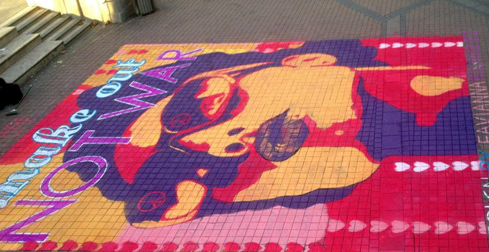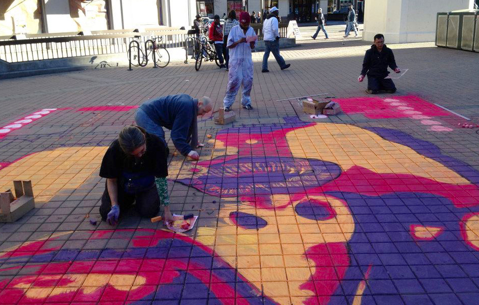 Image was a poster by Oakland artist and activist Faviana Rodriguez, who came down and signed her work. “Her designs and projects range a variety of different issues including globalization, immigration, feminism, patriarchy, interdependence, and genetically modified foods. Rodriguez also works with multiple advocacy groups include Presente.org and Culture Strike, of which she is the Executive Director.” – Wikipedia