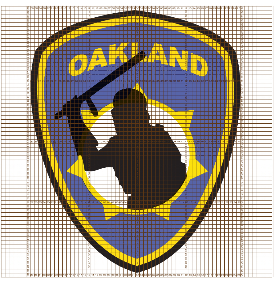 The police accused them of breaking into the Y but that was later proved untrue in court. Those arrested there were awarded a large settlement. The badge was in response to several incidents of police violence in Oakland, including the shooting of veteran, Scott Olsen. It might be redundant to say that this was a direct, in your face message to OPD. The thing I remember from the speeches that day was a man, I don’t know who he was abut he said “Do your best.” That day the police helicopter was right above it, hovering and shining its spotlights down on our badge. When there were no retaliations we figured we were getting away with it. We didn’t have the right blue. Having yet to discover the superior brands, our colors were very “chalky.” We didn’t finish until after dark.