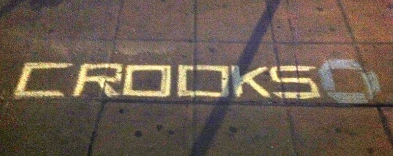 Alex is a Los Angeles political artist and painter. He was arrested for chalking banks in 2012.