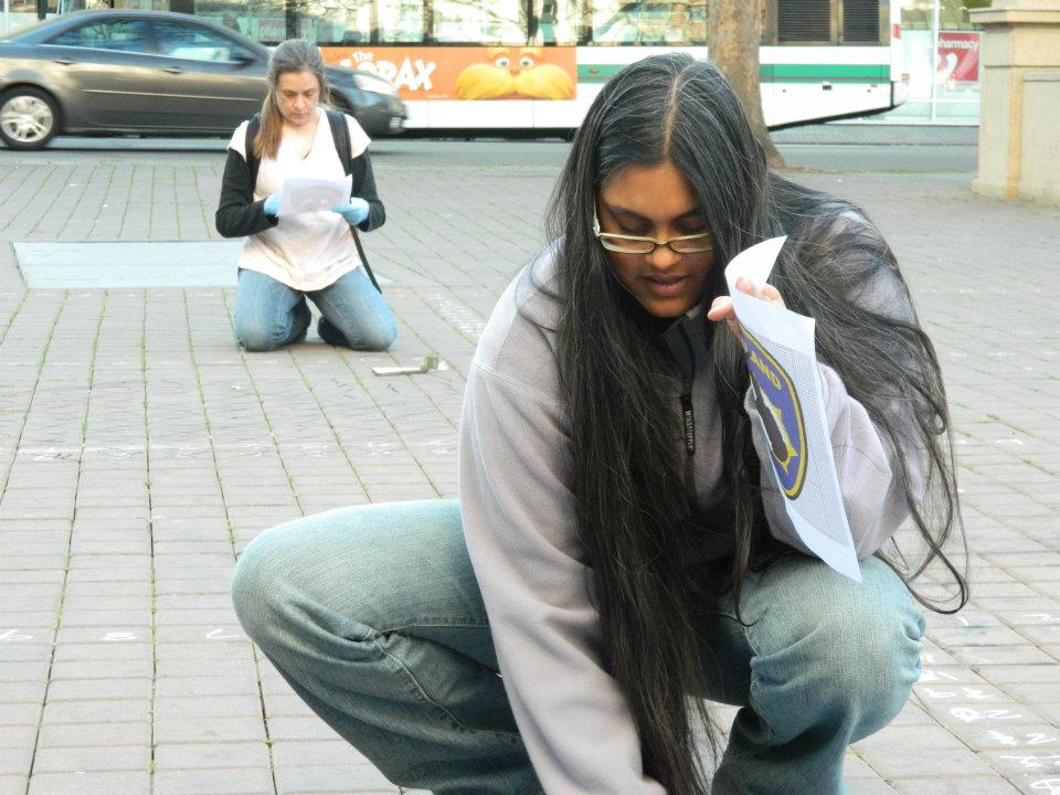 Craig and Pratibha are a couple and were old friends and founding members of the political art group, Fresh Juice Party. Although FJP is now mostly a band, and I am no longer a member, they were the original chalkers and continue to chalk. They have written many protest songs and continue to write and perform them.