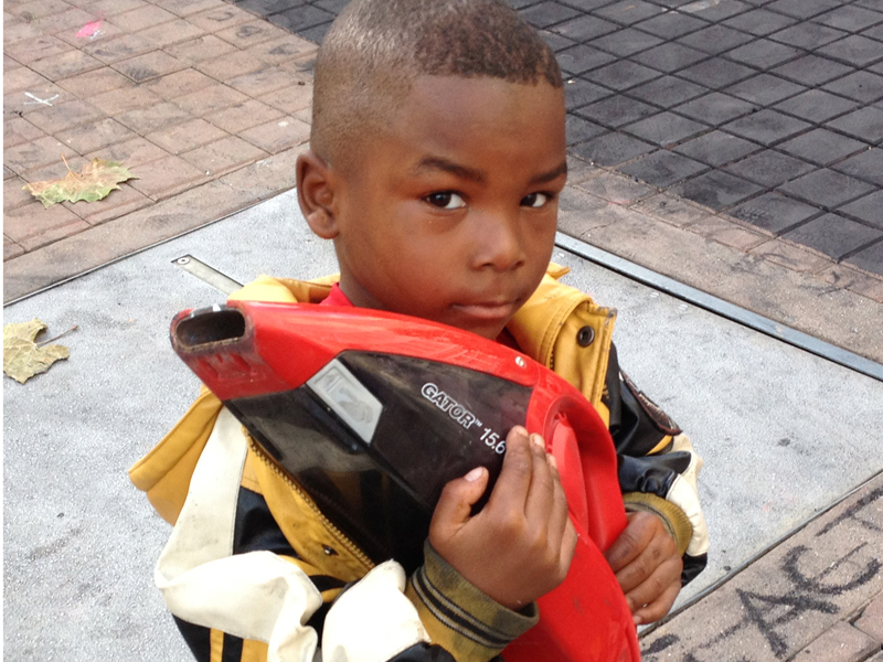 Toriano liked playing with the dust-buster we used to suck up some of the chalk dust. He REALLY wanted to keep it. “But I need it!” he complained.