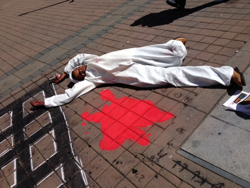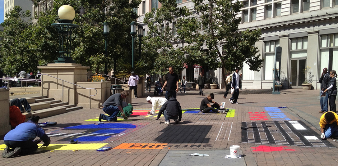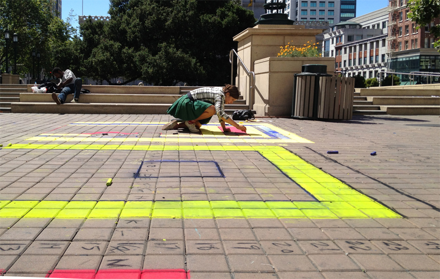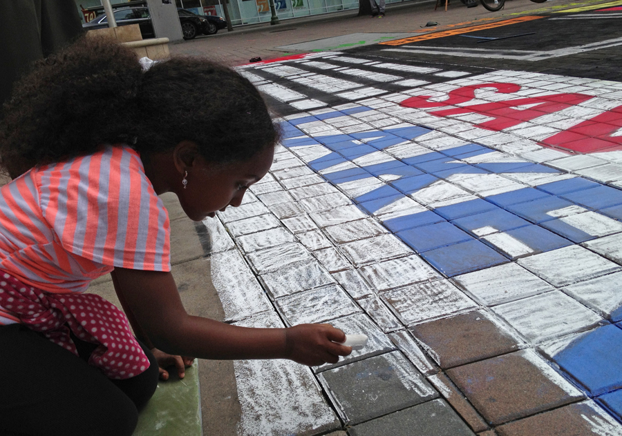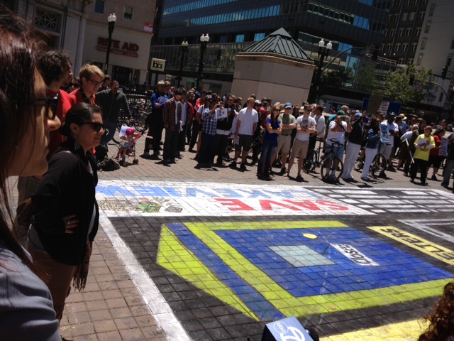 When we arrived at the protest, there was a crowd that stood respectfully not standing on the artwork even though it was between them and the speakers. That was never a requirement. People would walk and even ride bikes over the chalk even while we were doing it. But it was an amazing feeling that day to see the respect.