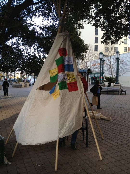 The illegal tipi that was removed from the plaza