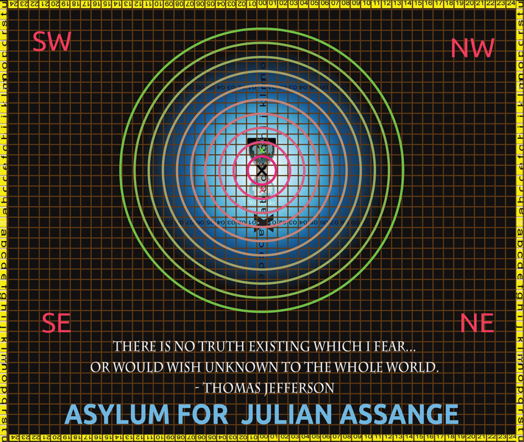 The image was the Wikileaks symbol in the middle of a glowing circle background. Tag line is Asylum for Assange and a Thomas Jefferson quote: “There is not a truth existing which I fear… or would wish unknown to the whole world.” Friendly with Christine Assange and always supporters of whistle blowers, when Julian Assange made his bid for asylum in Ecuador, we felt it was time to kick in some support. (I can’t speculate if Jefferson would have felt the same way if he had known about what future DNA tests would say about his dalliances with his slaves but nonetheless, he holds a special hero’s place in history that include saying some really great things and that was one of them.)